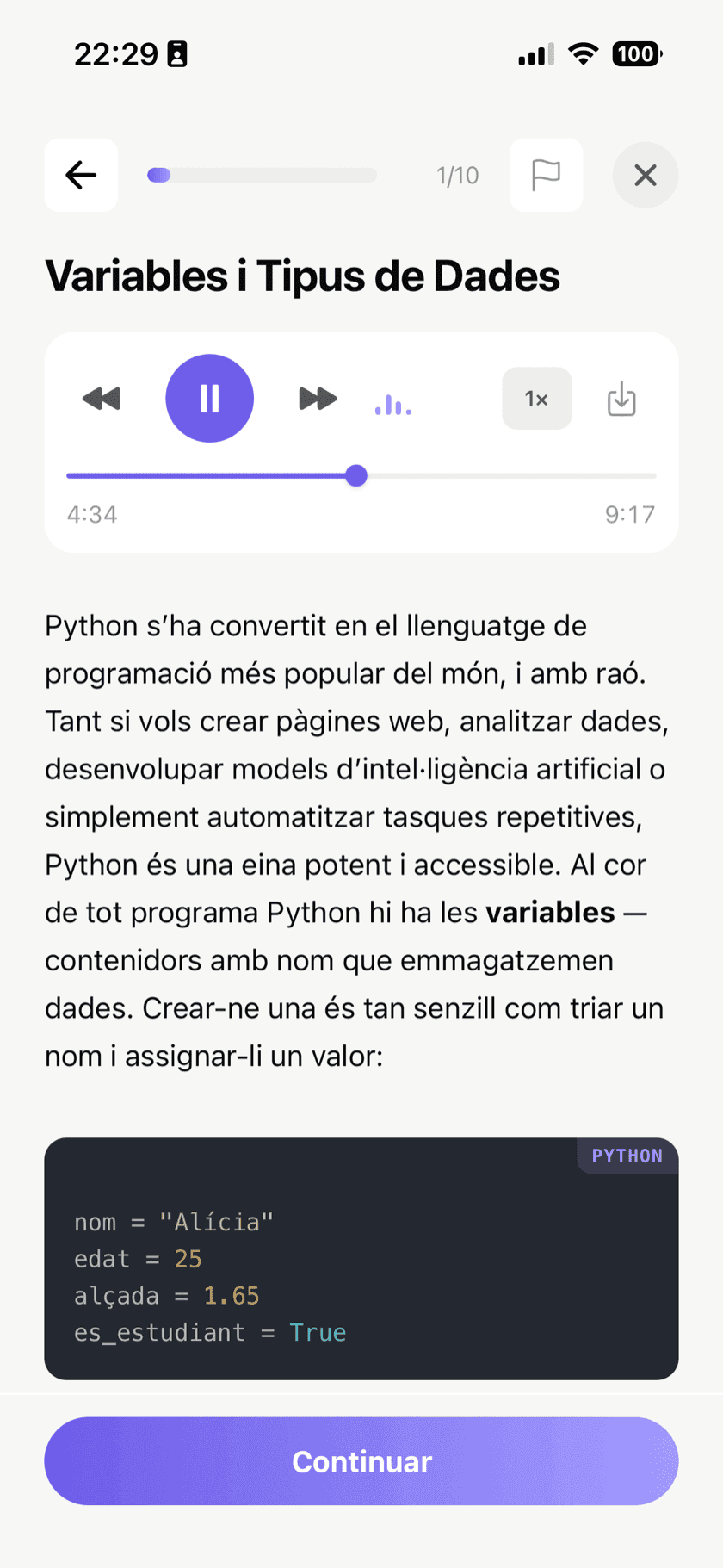 Sí! El pla gratuït et dóna 2 cursos actius, 3 cursos nous per dia i accés complet a tots els tipus d’exercicis inclòs la repetició espaçada. No cal targeta de crèdit. Actualitza a Pro quan vulguis per a cursos il·limitats, lliçons en àudio i contingut més profund.
